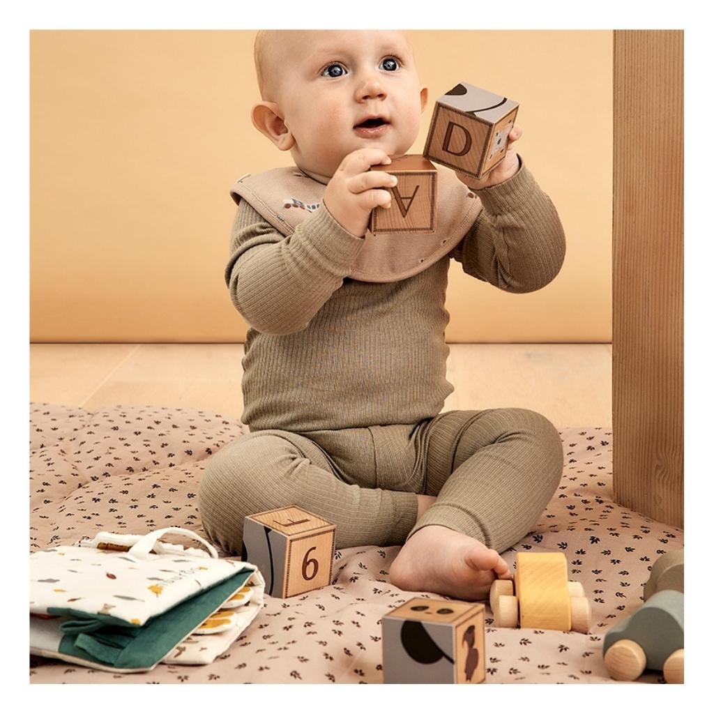 Creatief spelen en leren tegelijk! Deze houten bakstenen zijn versierd met cijfers (1-9), letters (a-i) en schattige Nuuroo-dierenmotieven. Ideaal om de fijne motoriek en het leren van je kleintje te stimuleren.